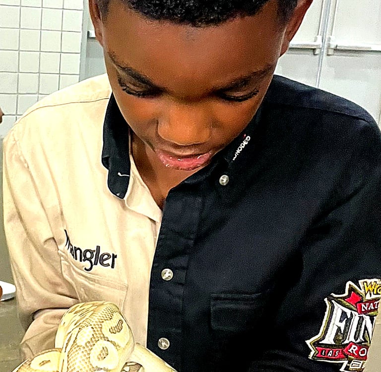 Meet Duke, the Youngest Scientist, is a curious young innovator with a passion for animals, genetics, and discovery. From studying fish crossbreeding to confidently handling reptiles and learning about marine life, Duke approaches science with courage, responsibility, and excitement.
